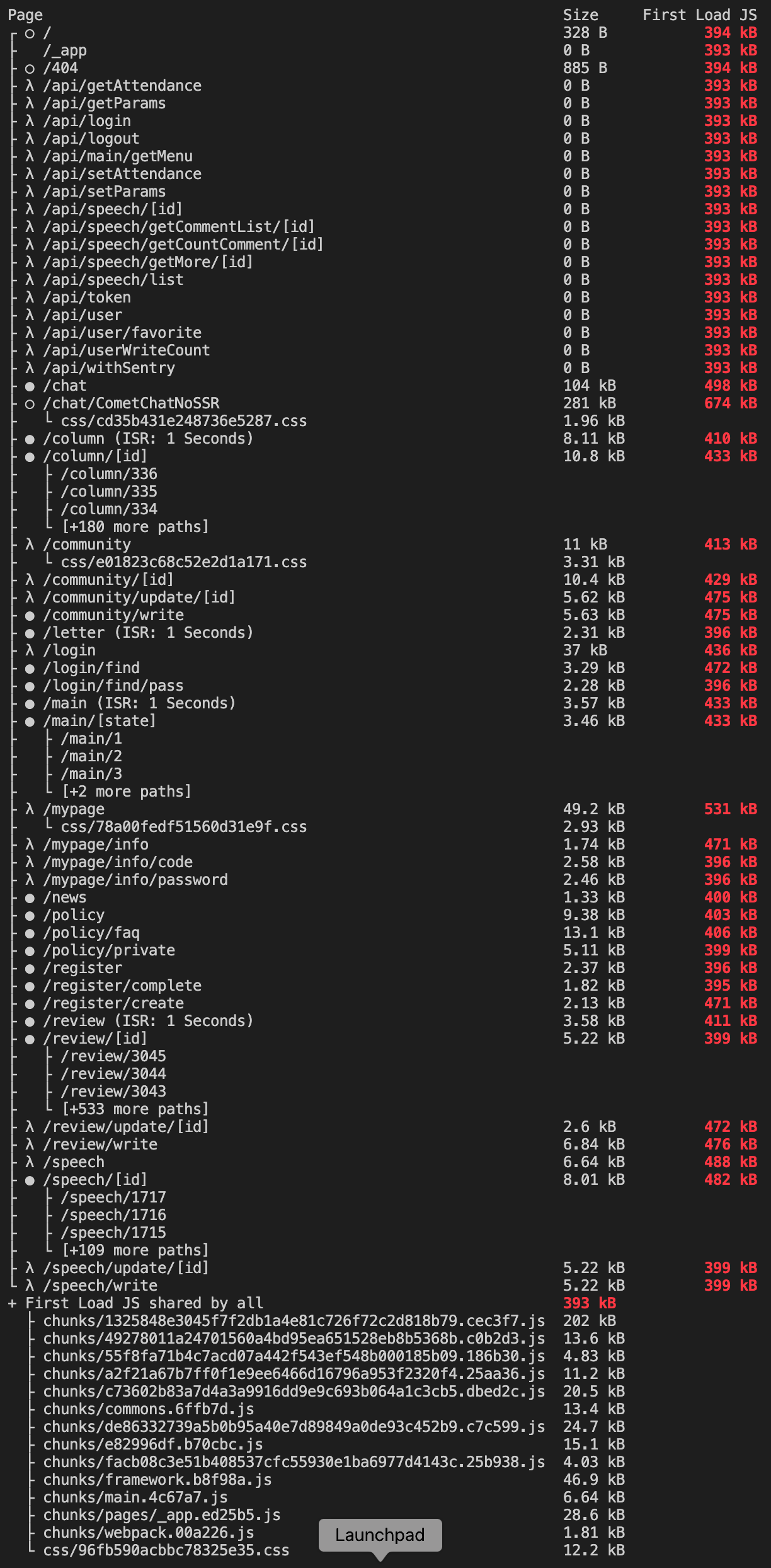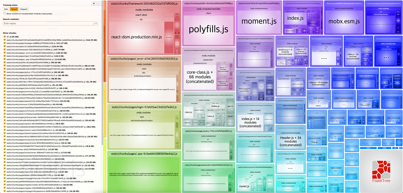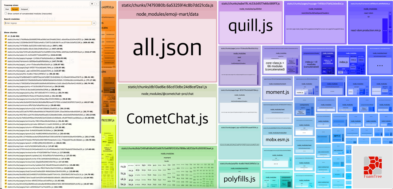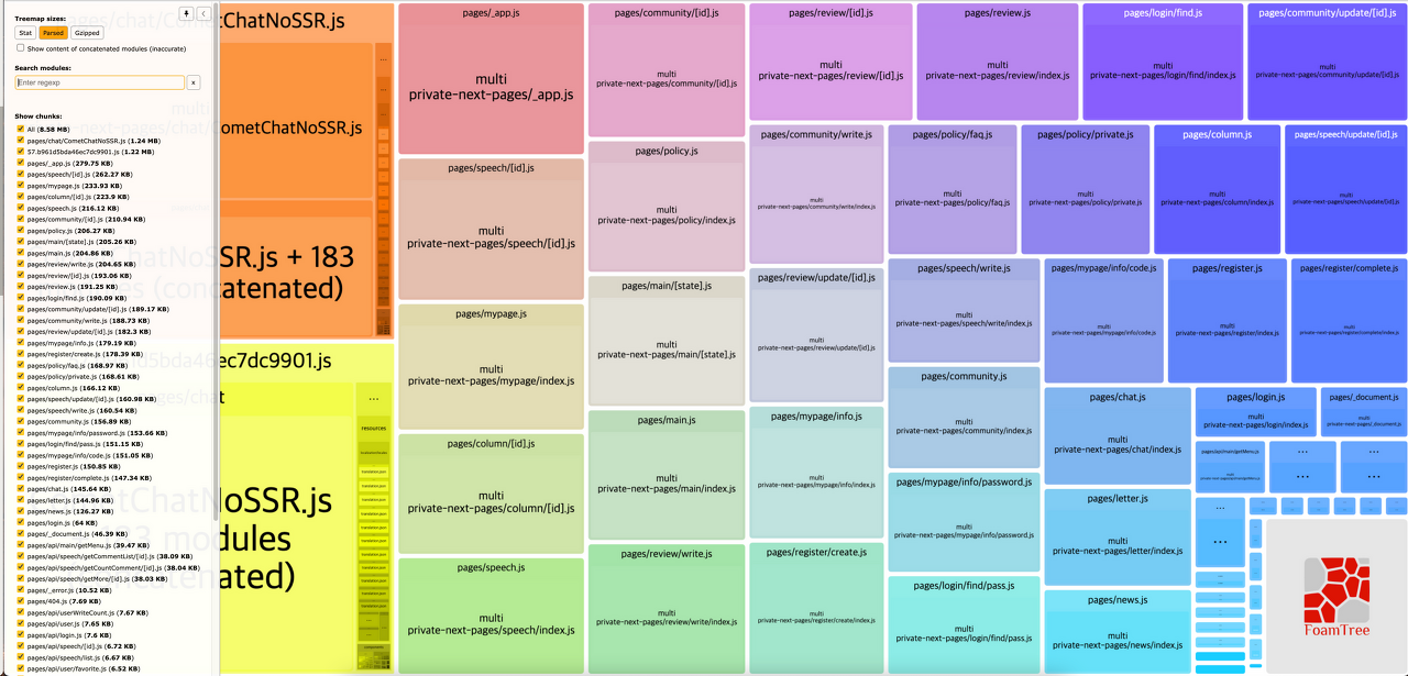 @next/bundle-analyzer 이용하여 돌린결과, 상당부분 cometChat이 큰 비중을 차지 하고 있었습니다.