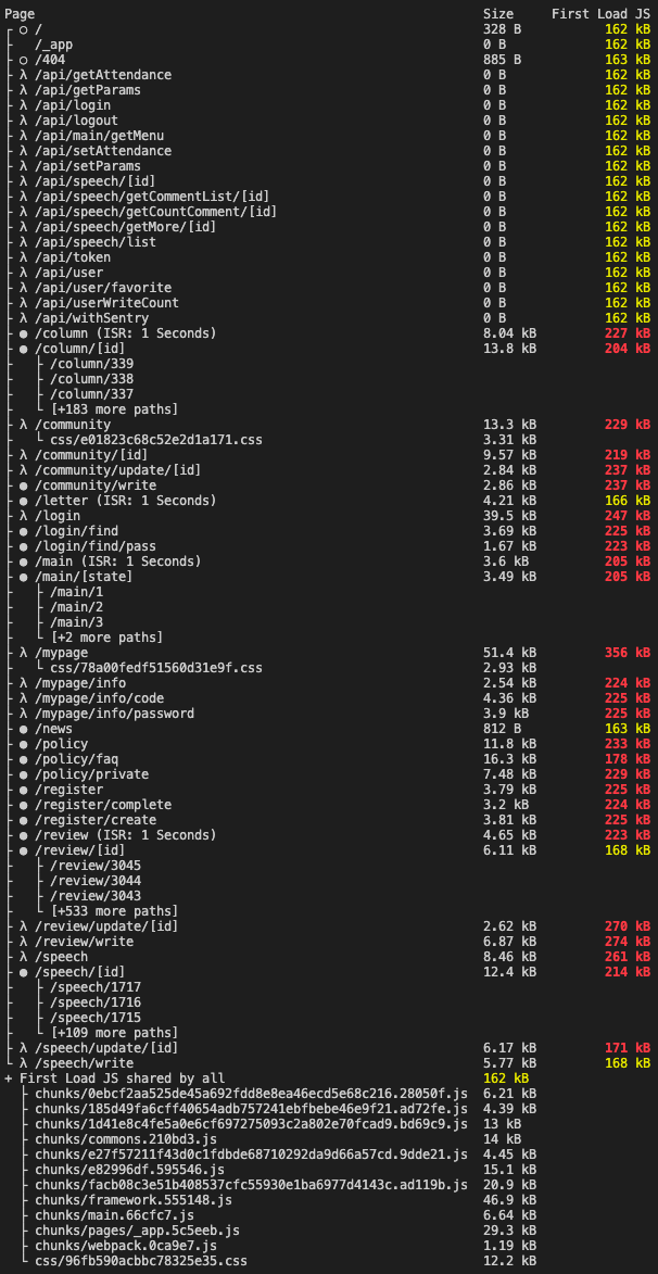 빌드시 First Load JS 측정