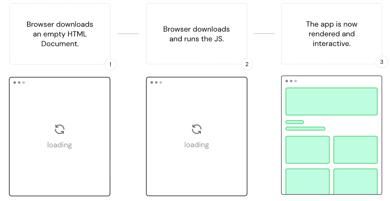 - Search Engine Optimization: 클라이언트 측 렌더링을 통해 전달된 콘텐츠를 색인화하고 업데이트하는 것은 서버에서 렌더링 된 HTML 문서보다 시간이 더 걸립니다. 이것은 검색 엔진 크롤러가 페이지 인덱싱을 처음 시도할 때 인터페이스가 완전히 렌더링될 때까지 기다리지 않기 때문에 우리가 논의한 성능 단점과 관련이 있습니다. 순수한 클라이언트 측 렌더링을 사용하면 콘텐츠가 검색 결과 페이지에 표시되고 업데이트되는 데 더 많은 시간이 걸립니다.