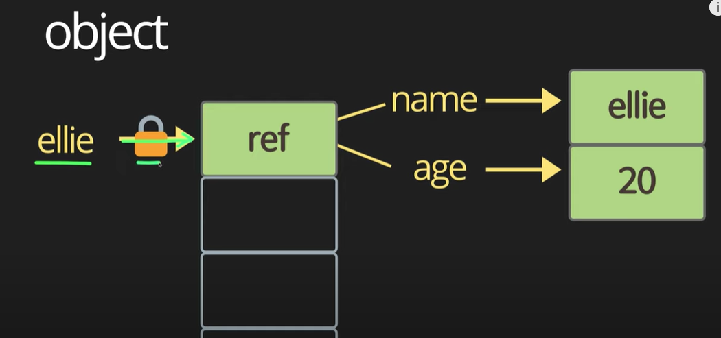 ellie object 안에는 name과 age 변수들이 존재.