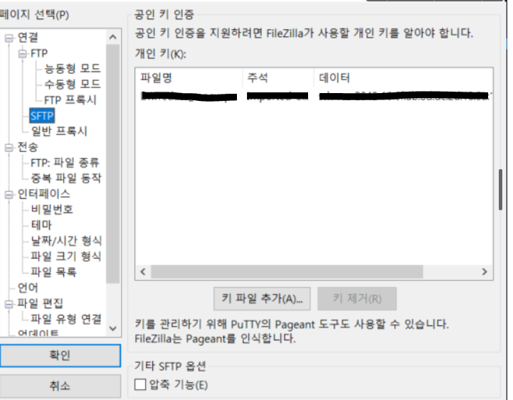 1. sftp 이용, 공인키 인증하는 곳에 pem 파일 등록