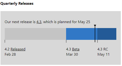 타입스크립트 공식 홈페이지에서는, 타입스크립트 버전도 확인할 수 있는데, 5월 25일에 버전 4.3이 출시될 예정인 것을 알 수 있다.