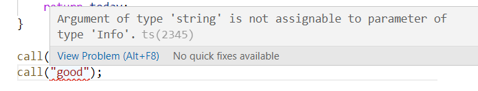 문자열 타입의 인수는 Info 타입의 매개변수에 할당할 수 없다는 오류가 뜬다.
